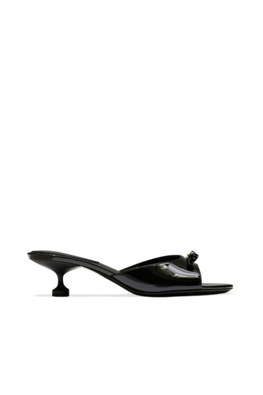 - Glossy patent finish
