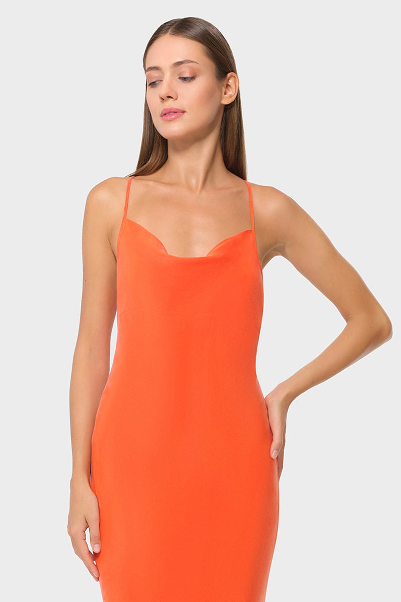 Experience modern sophistication with a touch of sensuality in our Scarlet Slip Dress. This stunning dress features a flattering draped neckline and adjustable cross-back straps, allowing for a customizable fit. Our bias-cut slip dress beautifully accentuates your