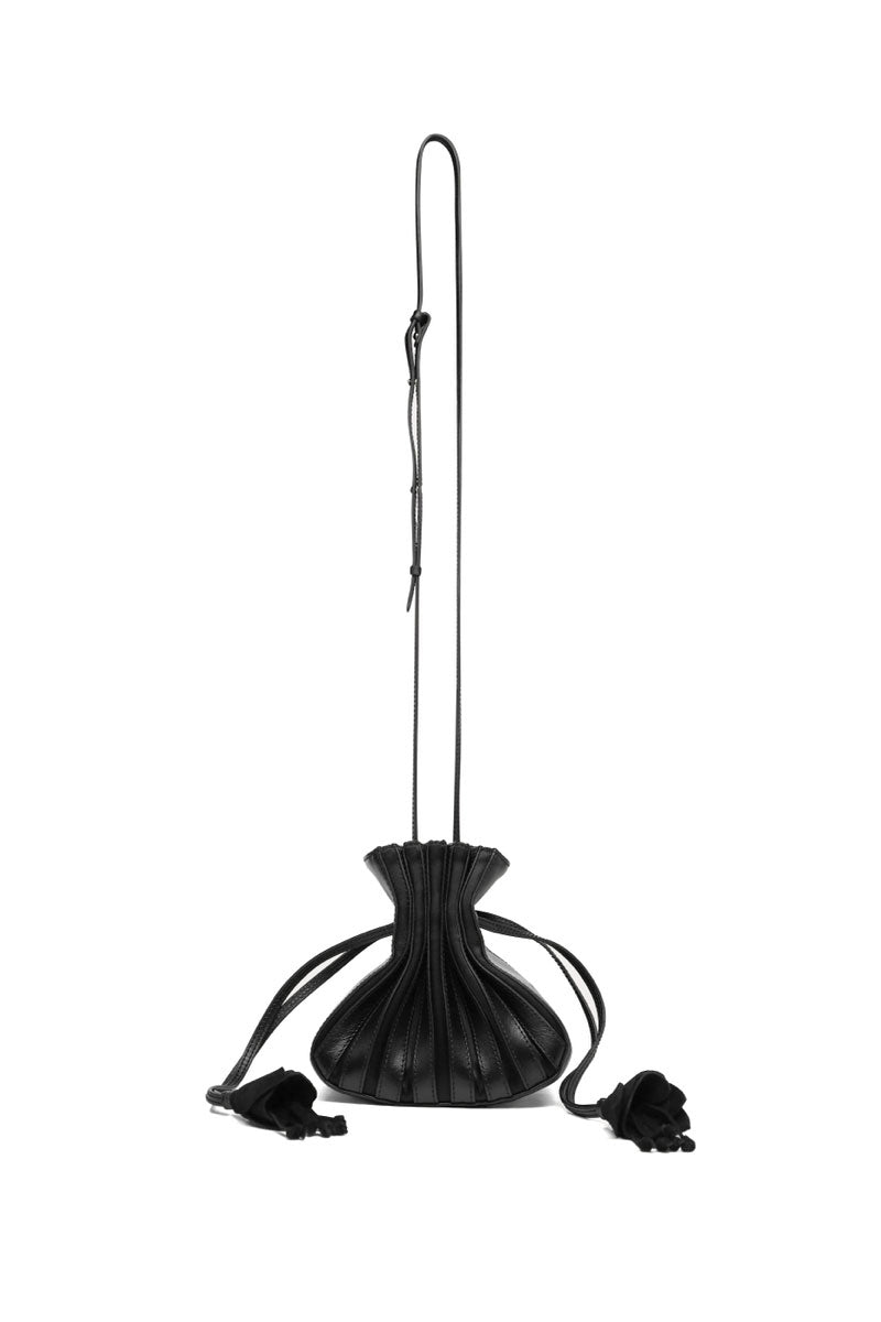 - Sophisticated crossbody bag in a combination of black leather and Italian satin