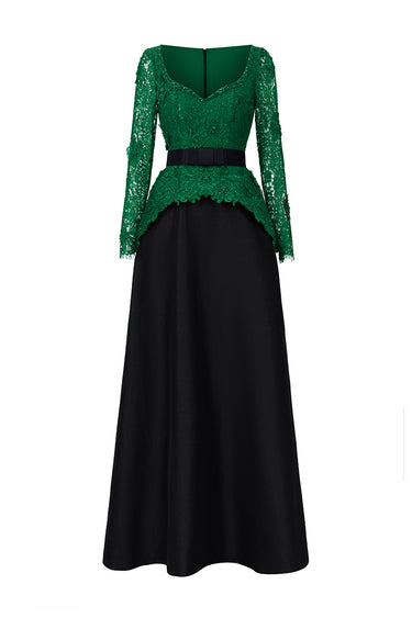 The Sweetheart A-line Gown in French Lace and Taffeta captures a romantic, couture-like elegance. The softly sculpted neckline enhances feminine allure, while long lace sleeves offer a refined sense of grace. Crystals delicately illuminate the lace motifs, creating a gentle shimmer with each movement. Finished with a taffeta waist belt, the silhouette feels poised, timeless, and effortlessly sophisticated.
