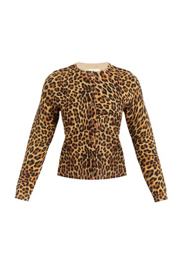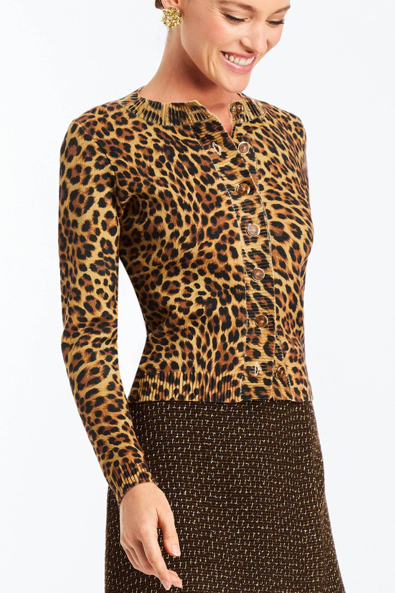 Fitted knit cardigan for daytime wear featuring a crew neckline