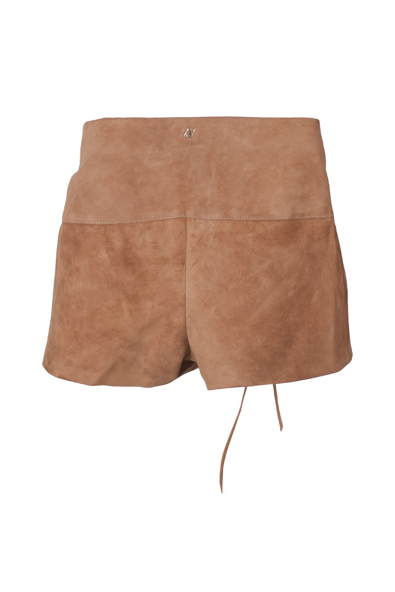 - A leather shorts with interlaced rope details at the front