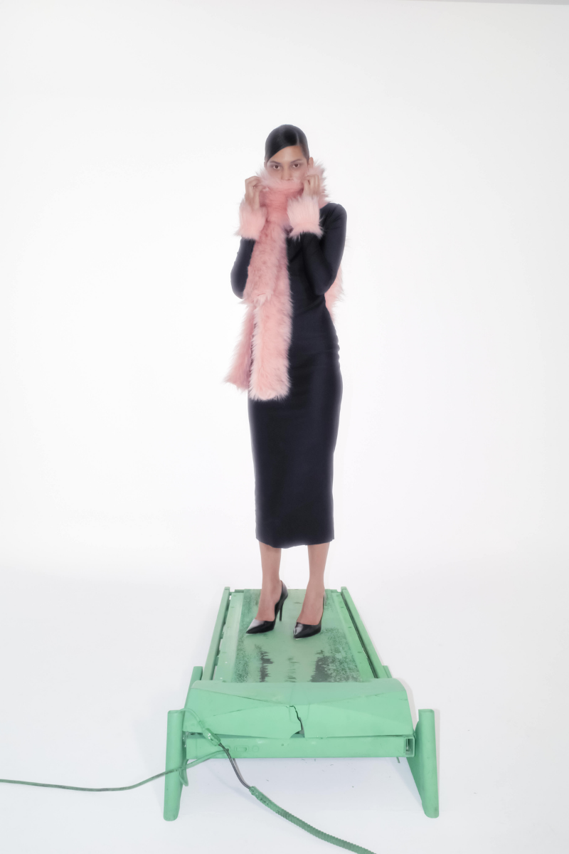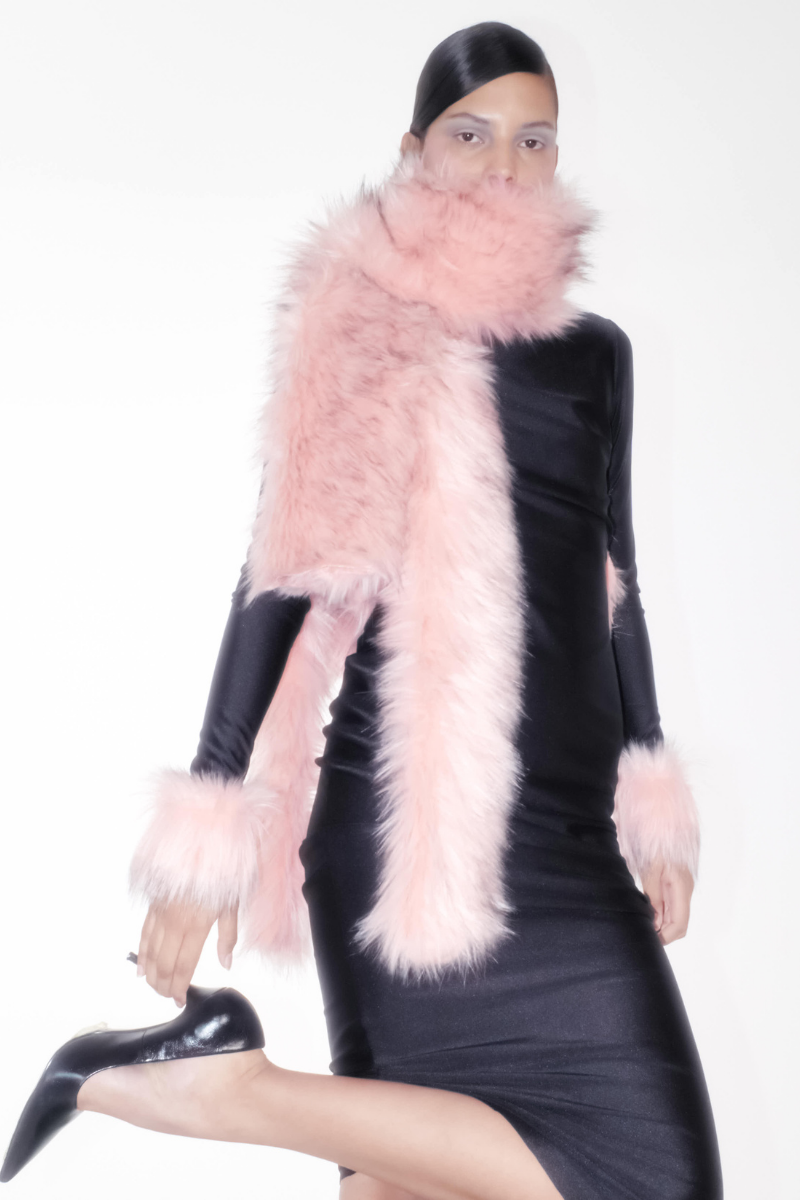 - black with pink faux fur trimmings