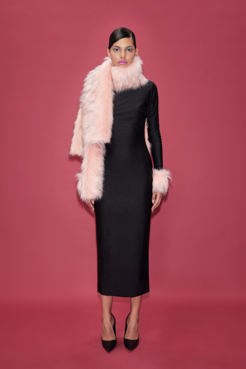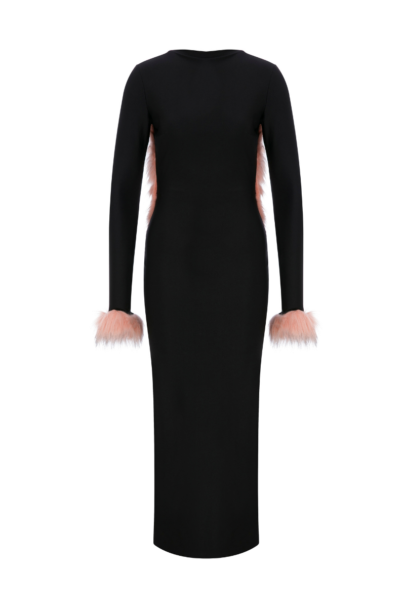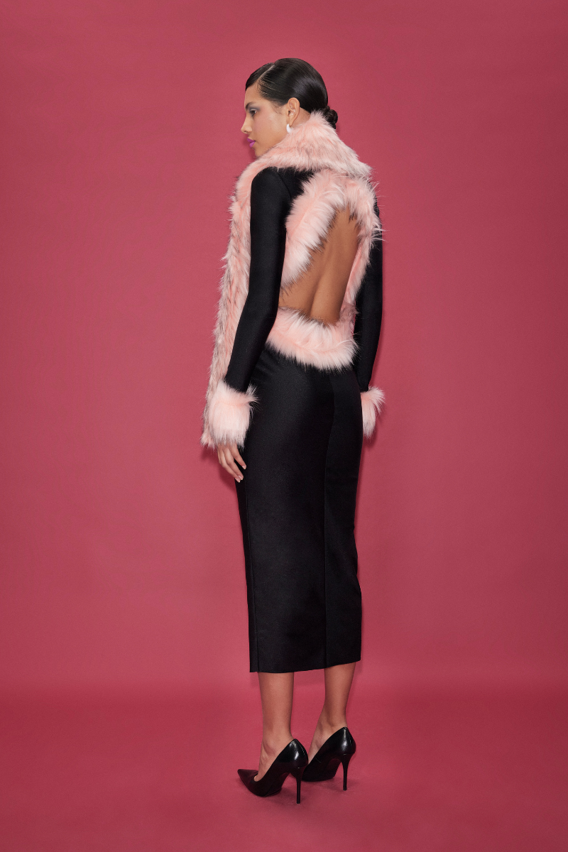 jersey backless midi dress with faux fur trimmings