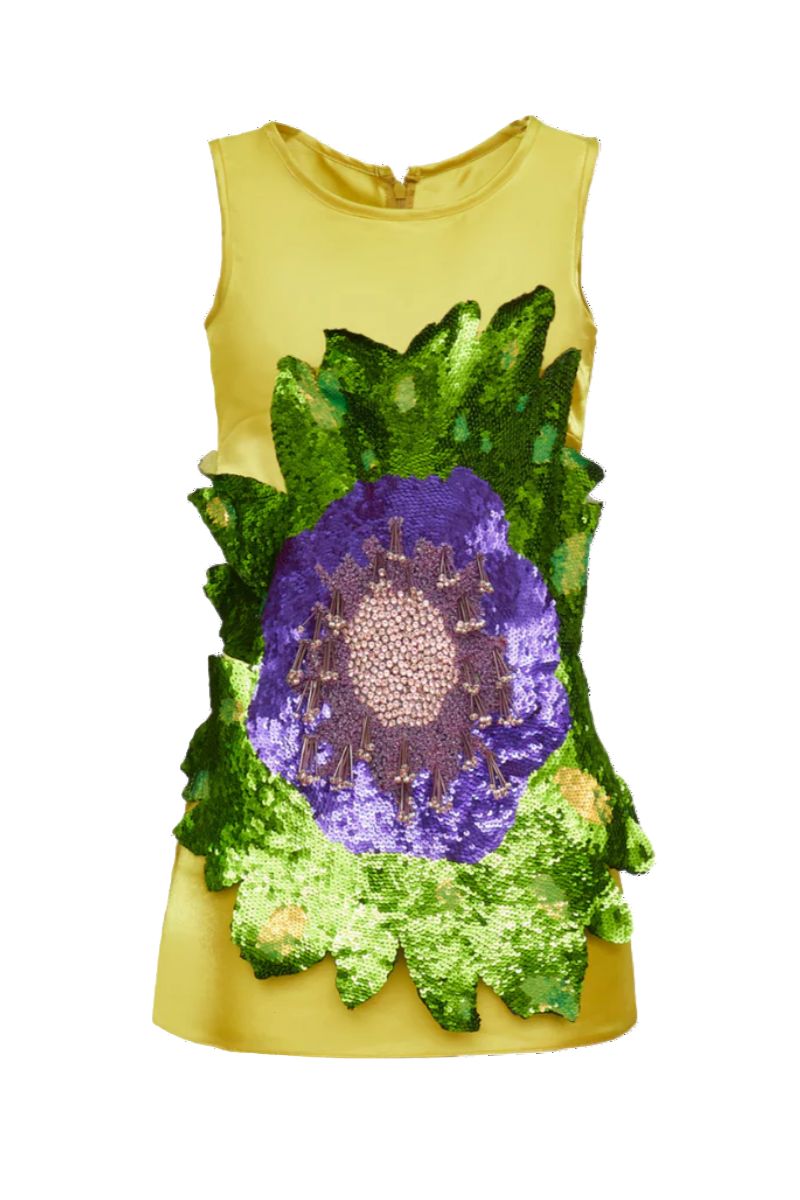 - Hand beaded sequin flower appliqué