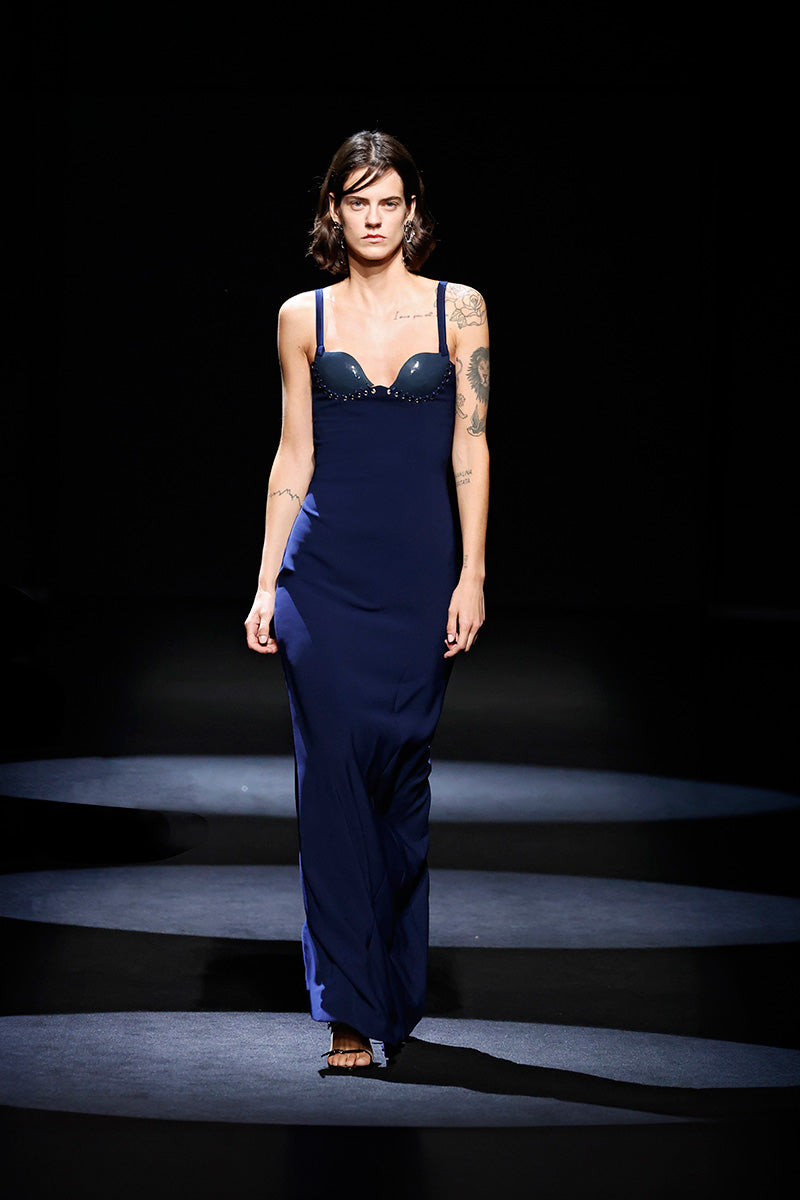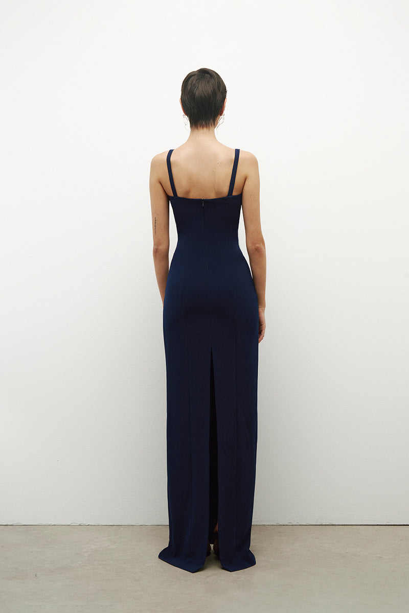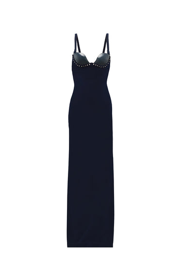 - Long dress with sweetheart neckline featuring handcrafted ceramic cups