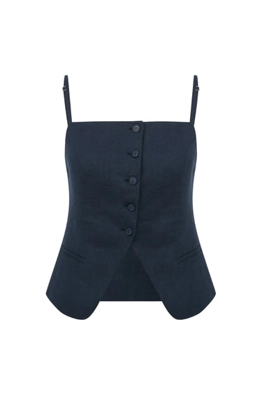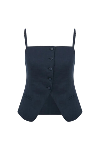 marona linen top in dark navy
