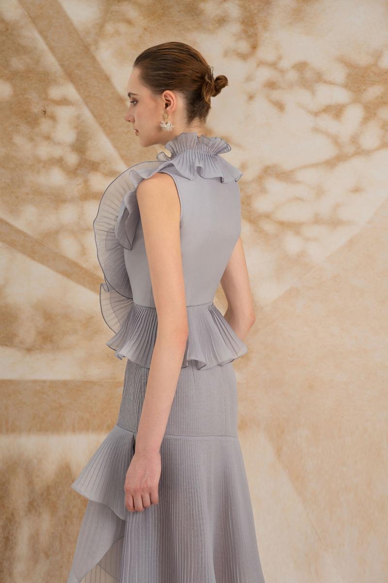 - Pleated collar