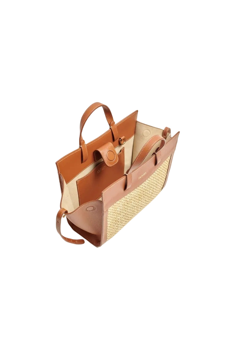 - Handcrafted in Italian Calf Leather combined with Natural Raffia