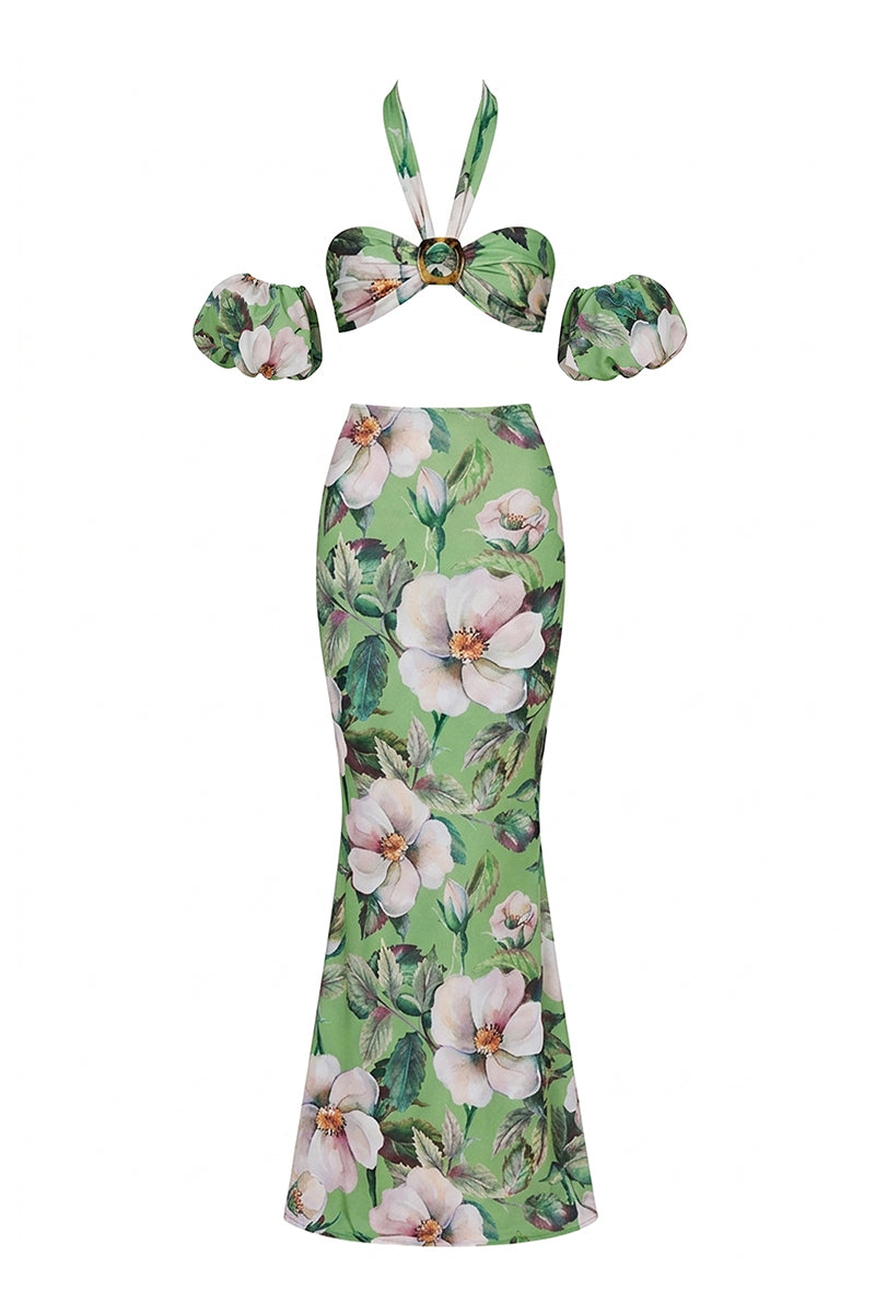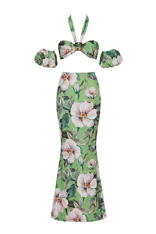 - High-waisted mermaid-cut skirt creating a fluid silhouette