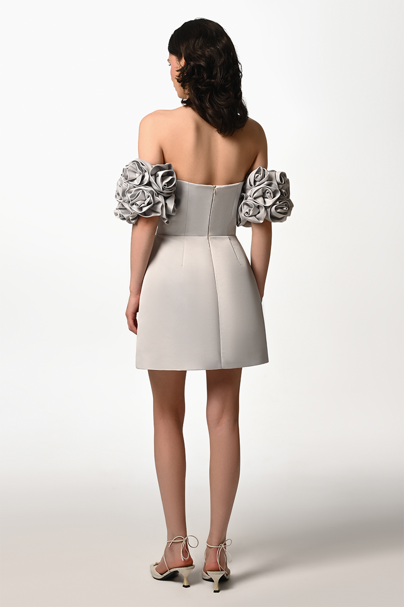 - Included Component: Handcrafted 3D satin rosettes on sleeves