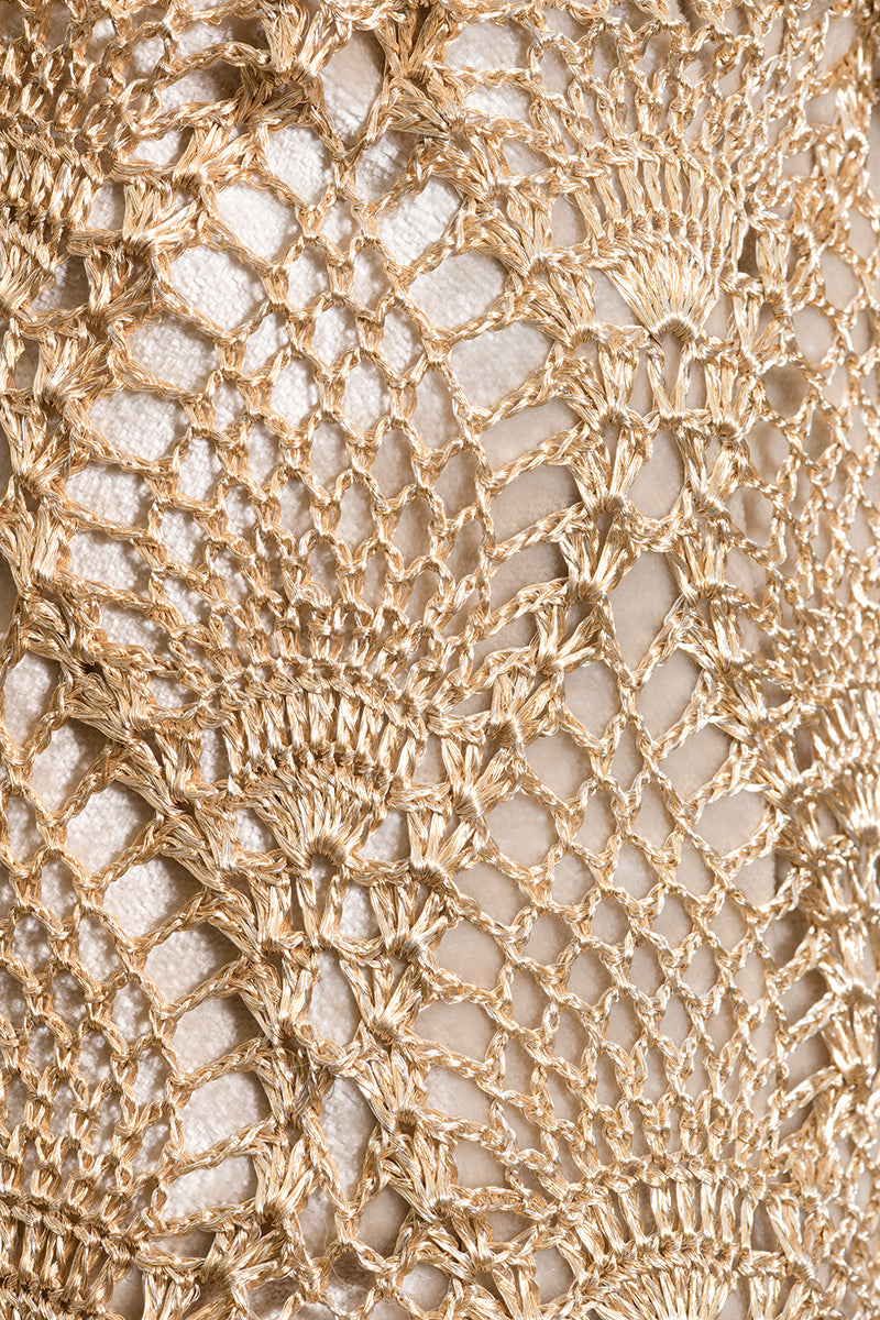 Hand-woven mochila in a pineapple weave inspired by the vibrant fauna and flora of Latin America. This mochila is crafted in silver-plated metal threads with a beige velvet lining, two internal pockets and a magnetic closure.