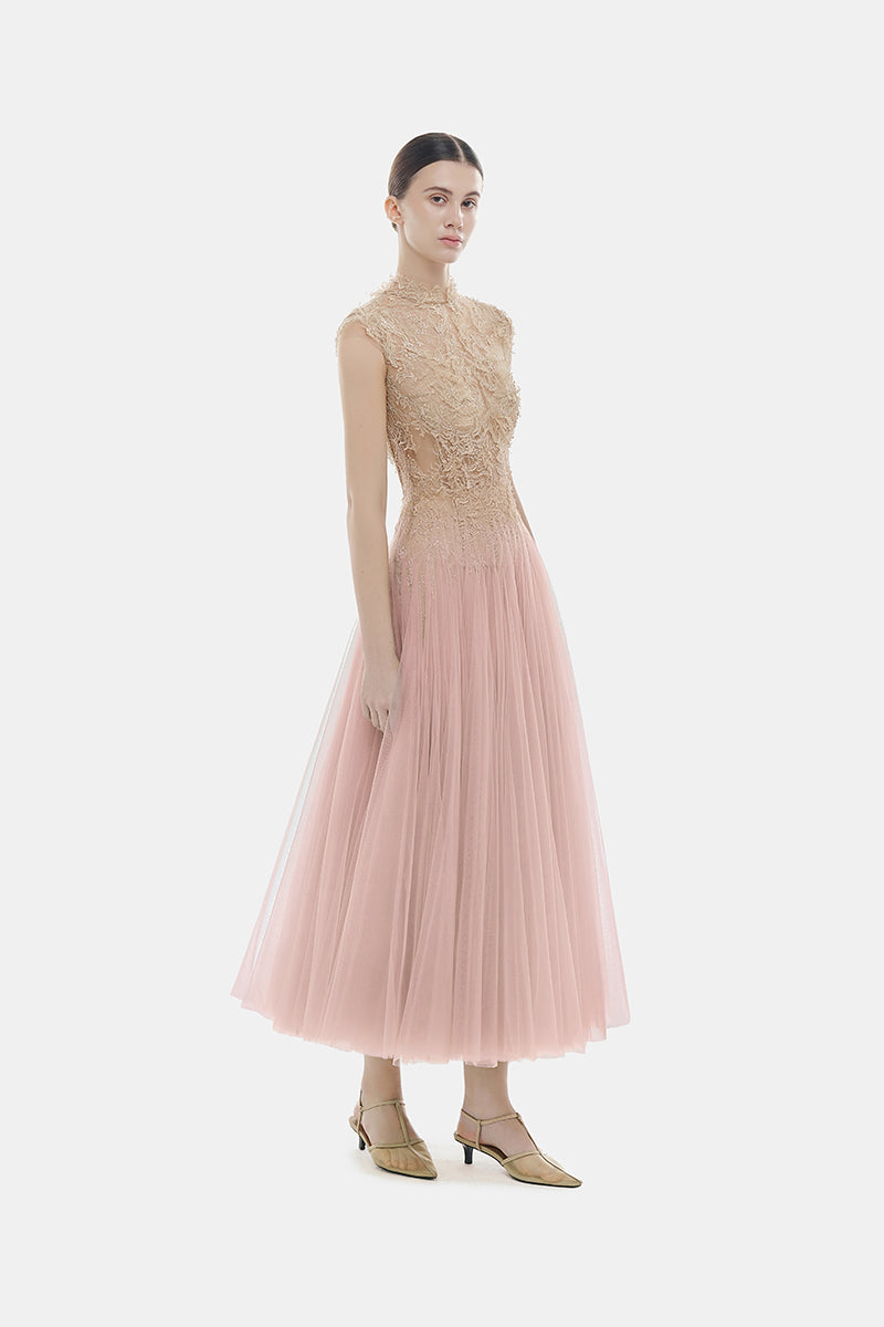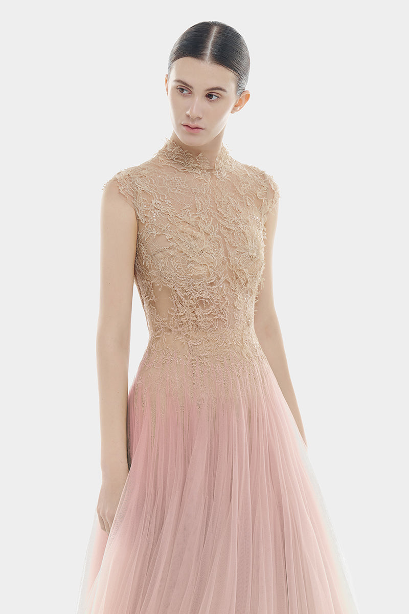 Pink Ombre Cut-Out Lace Dress