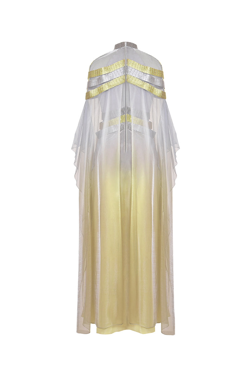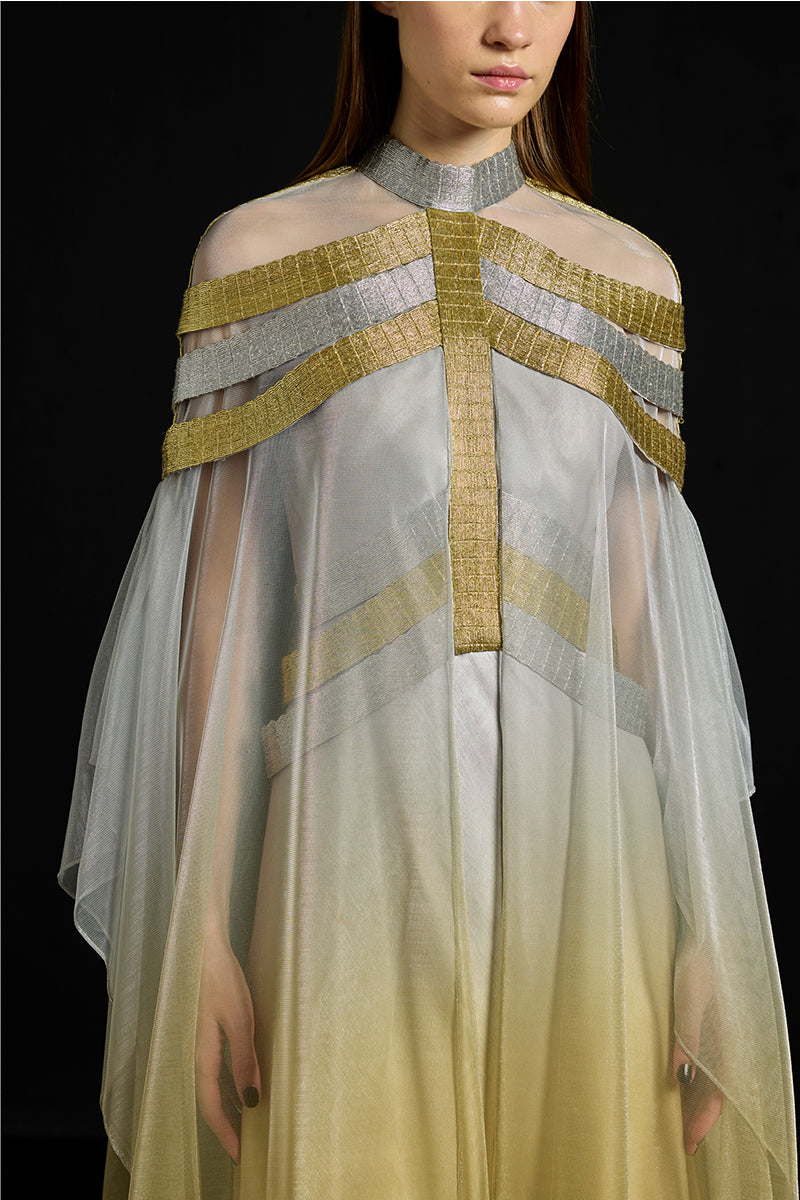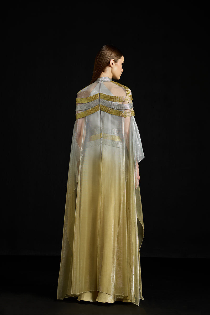 - Gradient Satin dress with a gradient Metallic-Tulle overlay