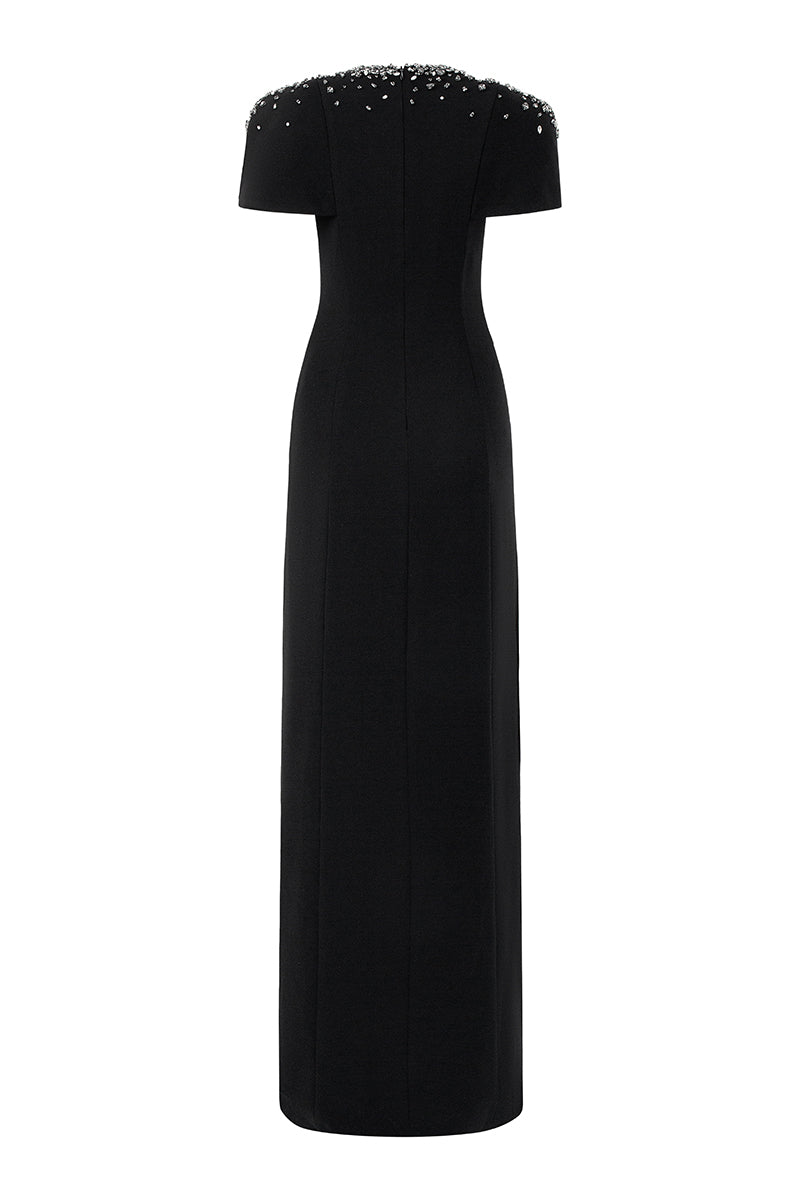 - Hand-embellished crystal shoulder detailing