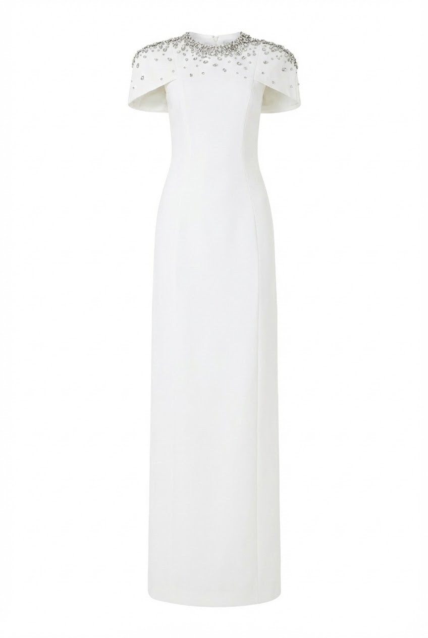- Hand-embellished crystal shoulder detailing