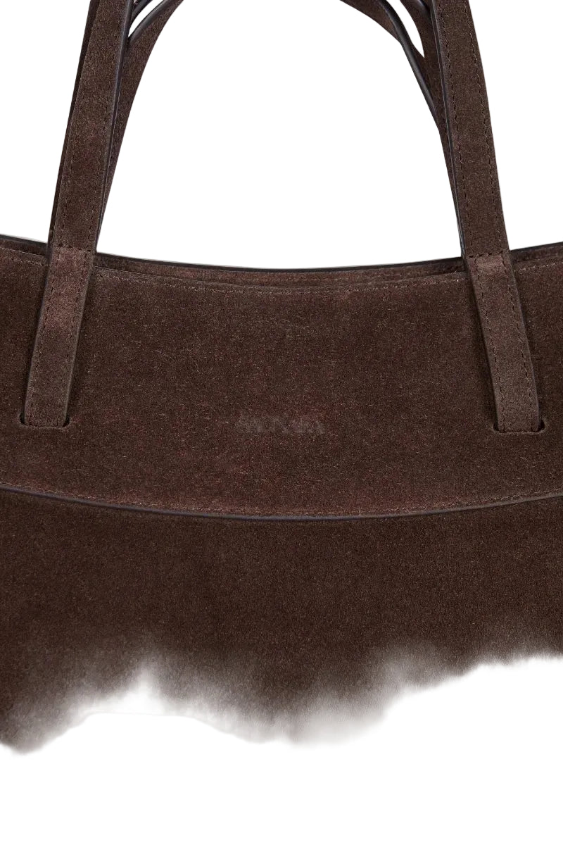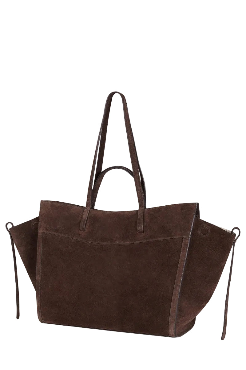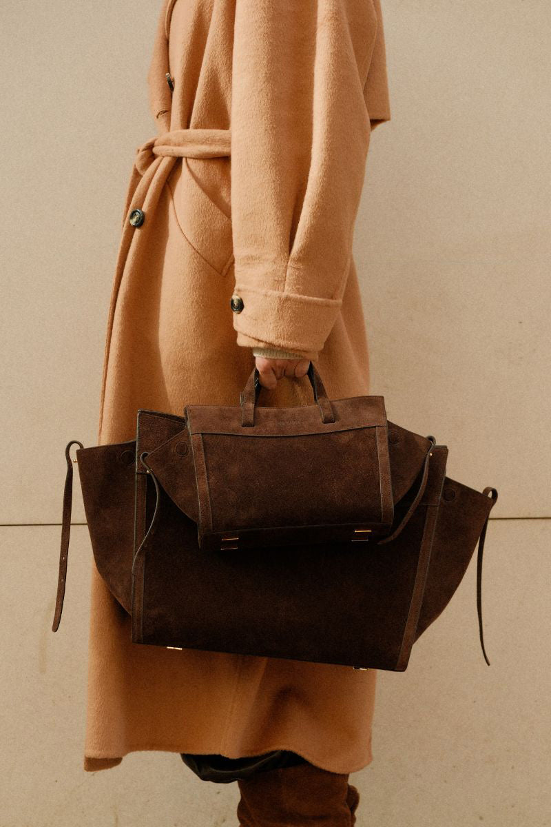 - Magnetic Closure with exterior leather straps for adjustable silhouette