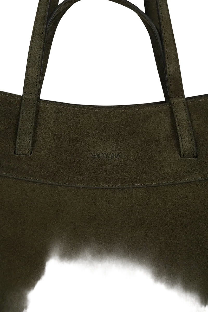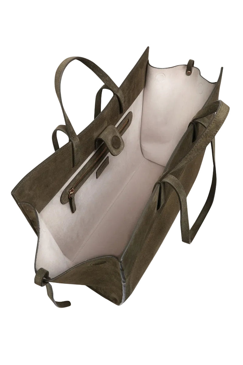 - Magnetic Closure with exterior leather straps for adjustable silhouette