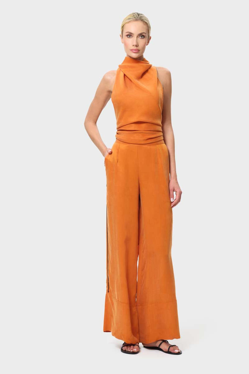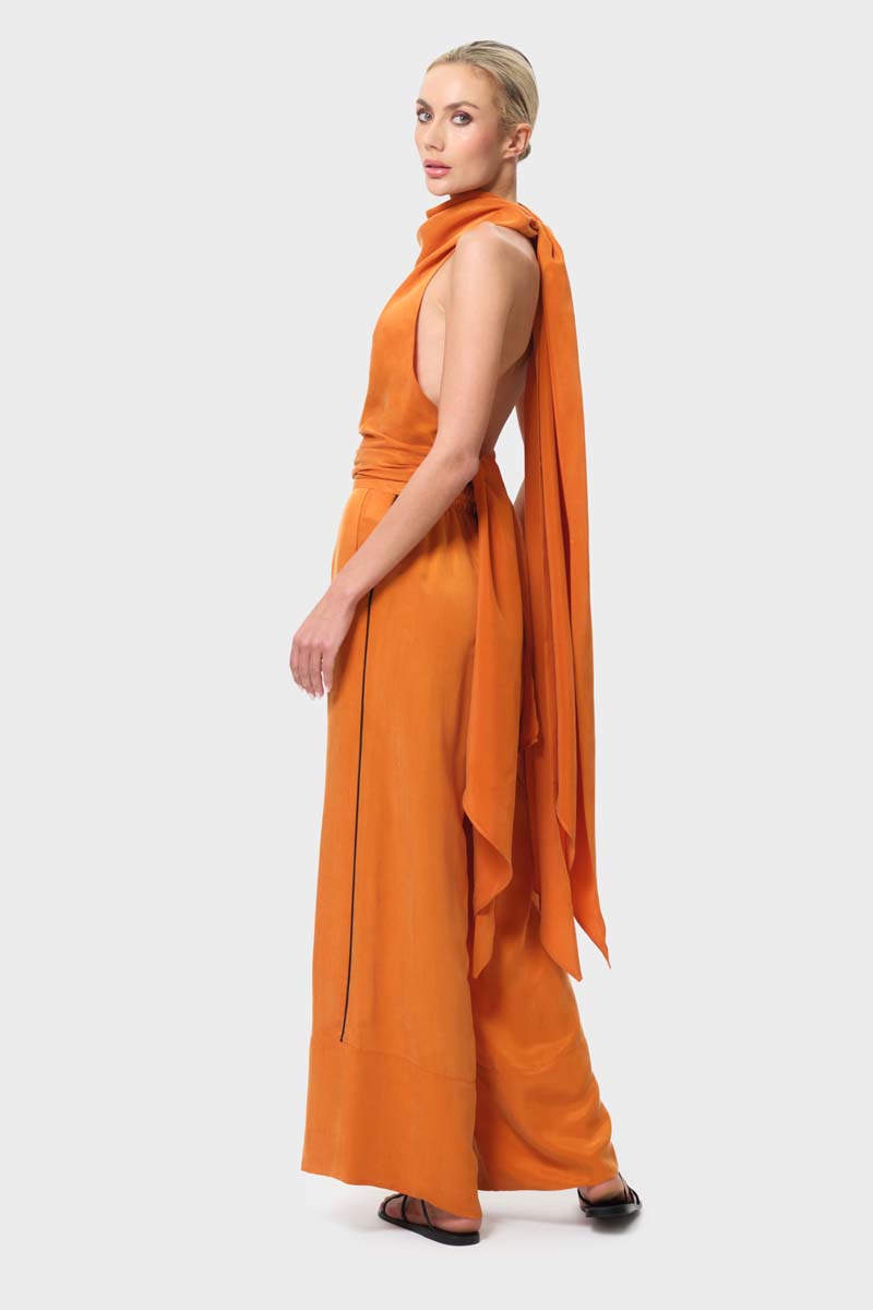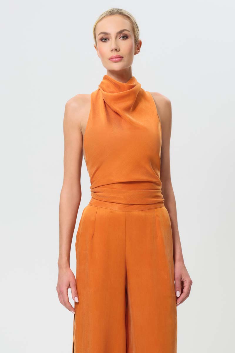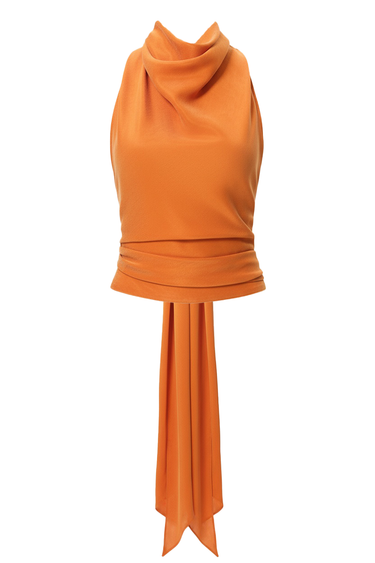 The Sasha Top is a statement of elegance and allure that combines fluidity and sophistication. This halter neck blouse features a dramatic draped cowl neckline and an adjustable tie at both the neck and hip, allowing for versatile styling and a flawless relaxed fit that flatters the shoulders and frames the body with ease. Its sleeveless, open-back design creates a striking silhouette, highlighted by a long, oversized tie that cascades down the back for added drama. The Sasha Top is perfect for an evening glamour or elevated daywear, it is the piece that ensures all eyes are on you.