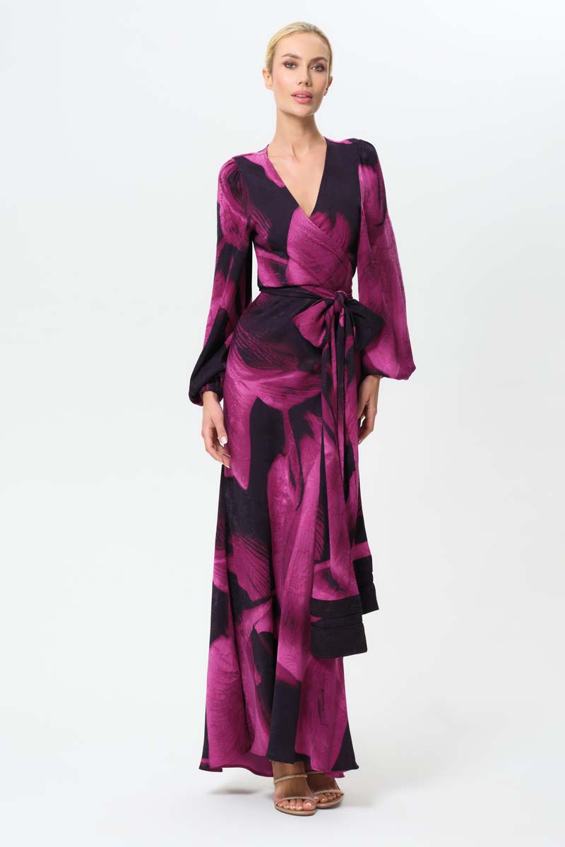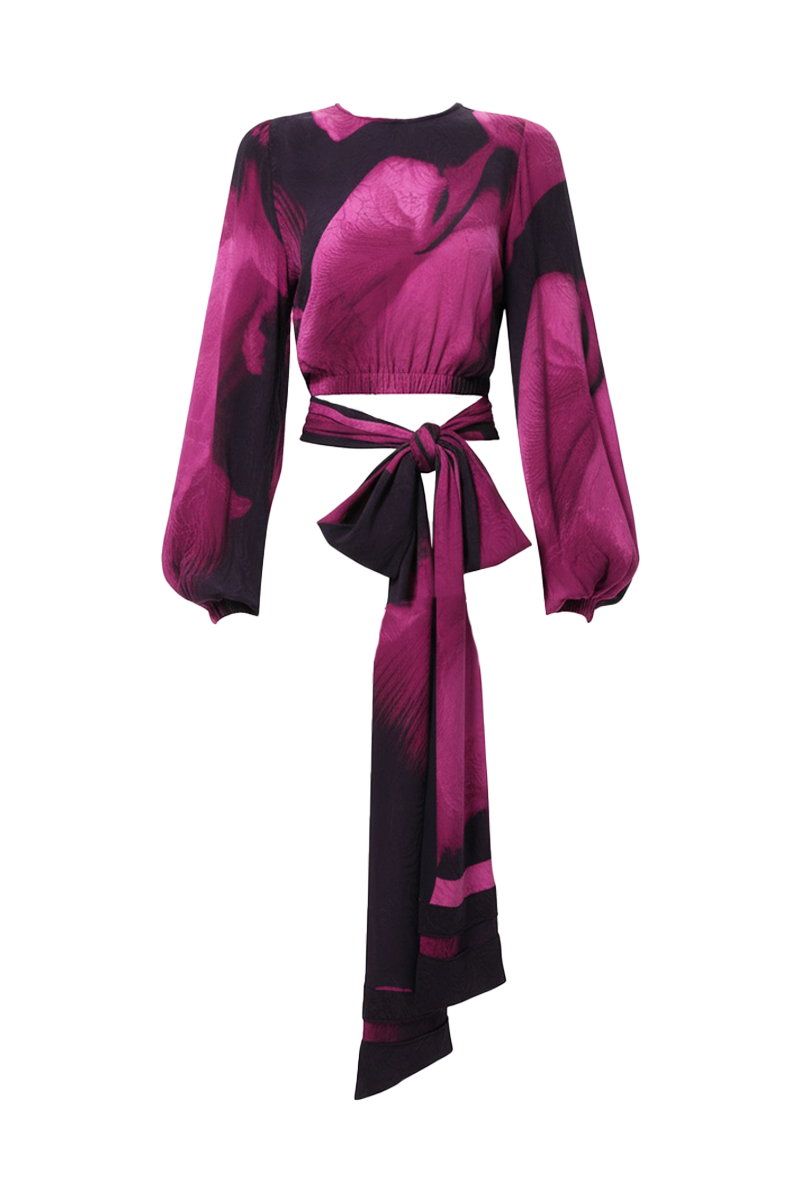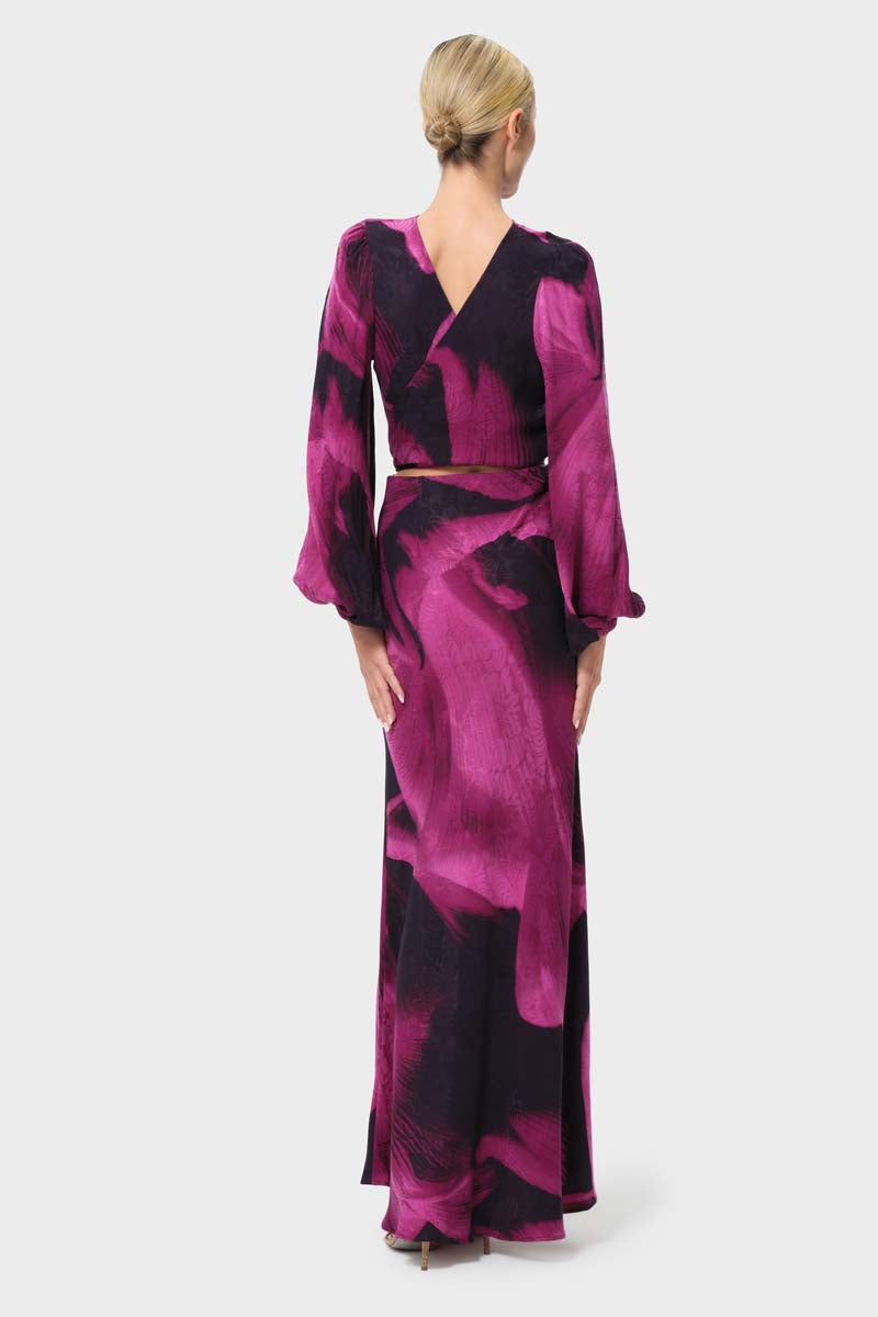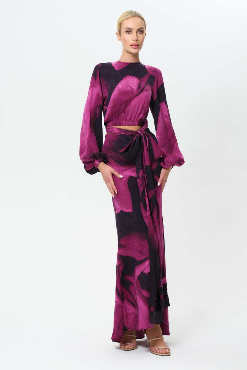 The Maia Wrap Top is the epitome of versatility and chic style. This elegant wrap top features bishop sleeves for a touch of dramatic flair as well as long ties that allow for personalized adjustment, always acquiring the perfect fit. It can be worn in a multitude of ways, with a low V-neck in front for a bold look or reverse the garment for fuller coverage in the front and a captivating low V-back. The Maia Wrap Top adapts to your style needs, making it an essential piece of any wardrobe. We recommend pairing this piece with the matching Lucy Slip Skirt for a formal affair, or for a more relaxed yet elevated look, try pairing it with the matching Lounge Pants. Embrace its versatility and sophistication, whether you're dressing up for an event or creating a stylish everyday ensemble.