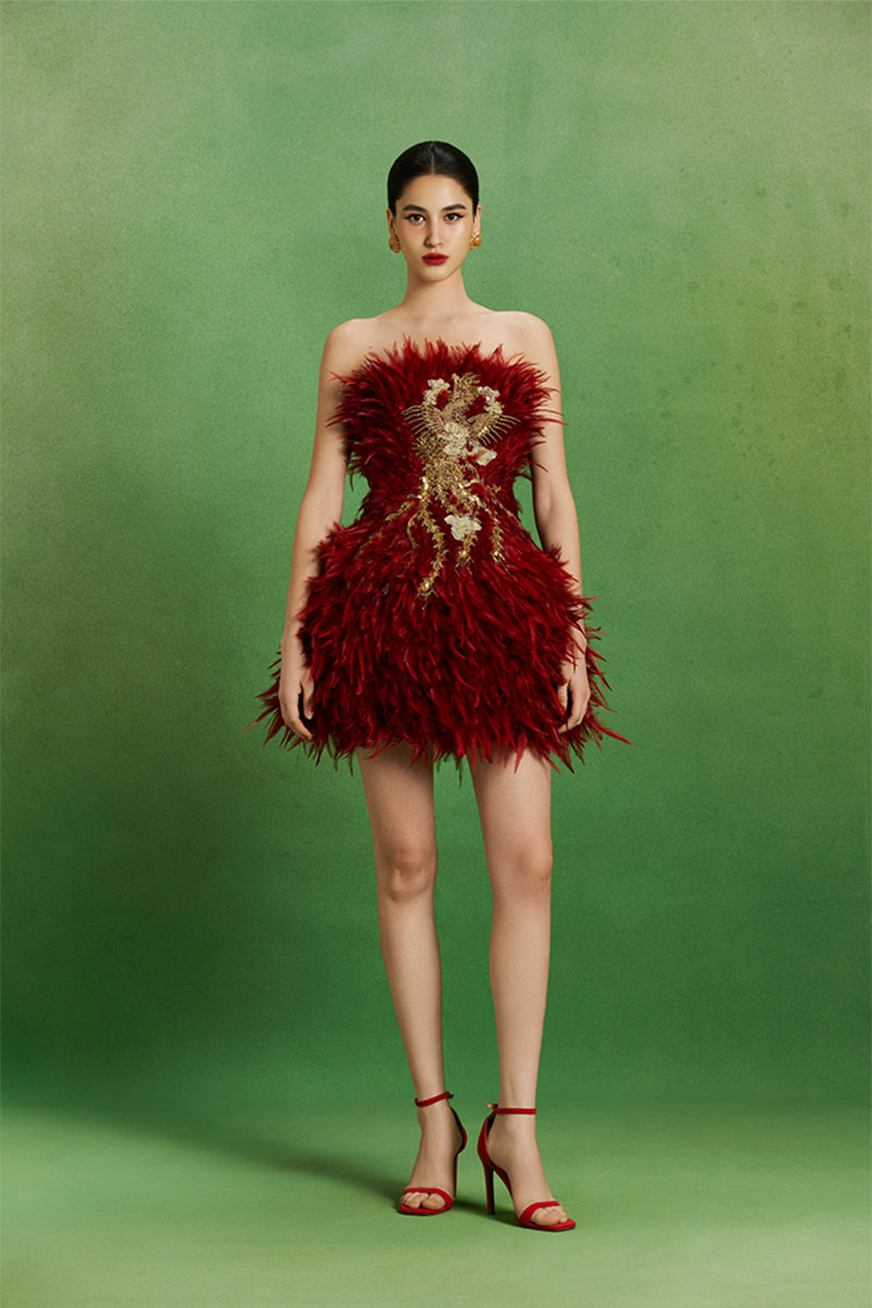 - An exquisite Phoenix motif, embellished with gold sequins and crystals