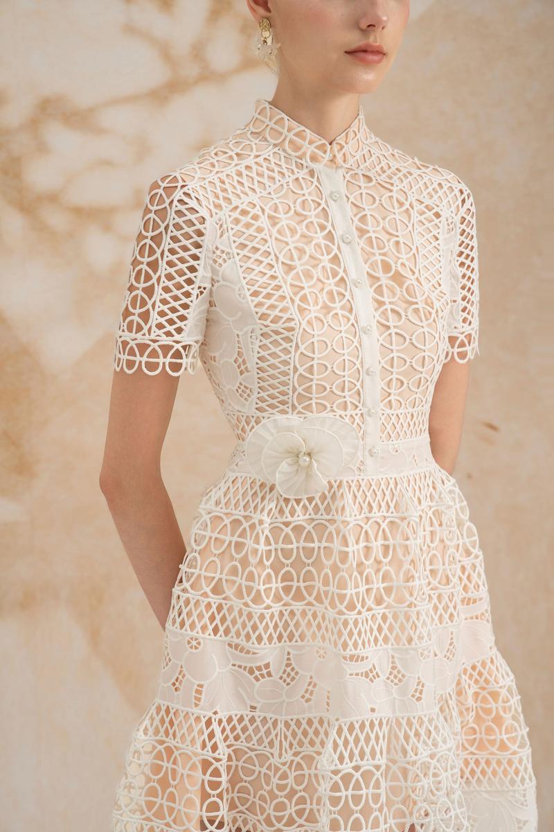 - Embroidered lace short sleeves