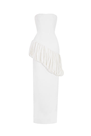 - Asymmetric rope draping detail at hip