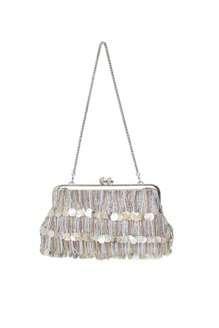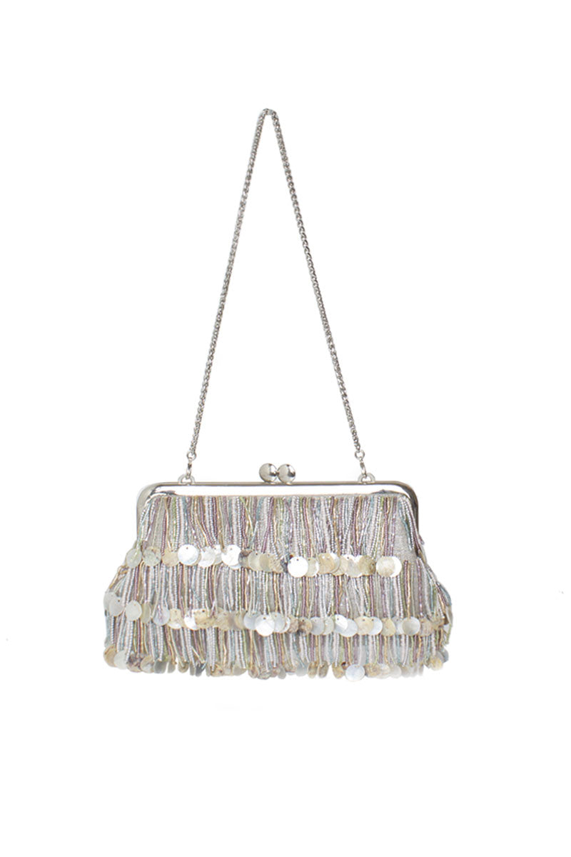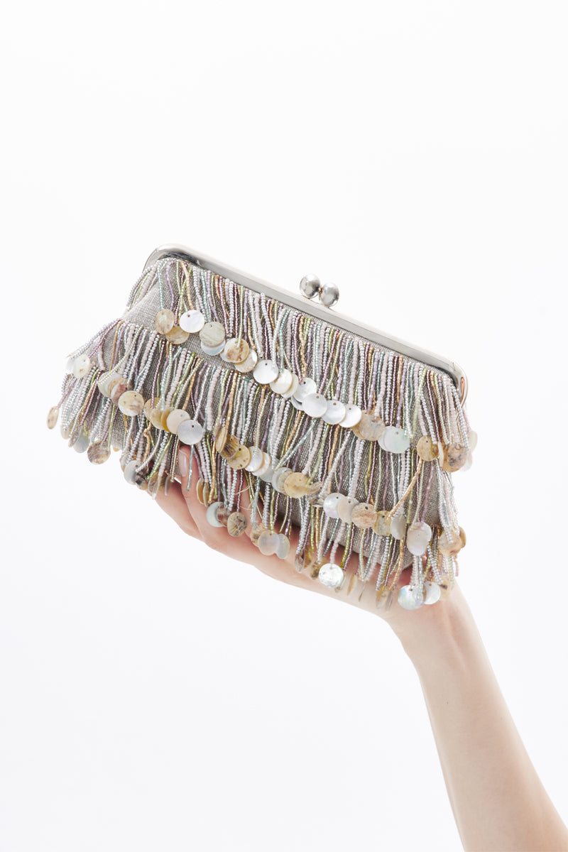 - Hand-embroidered with mother-of-pearl and bead fringes
