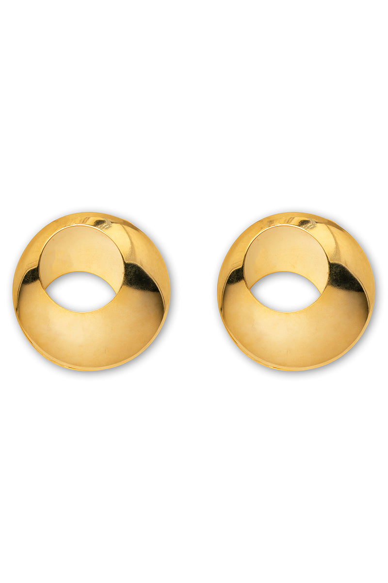 The Cesaria Earring features a bold, sculptural silhouette crafted from 24k gold-plated brass, designed to make a statement with every wear.