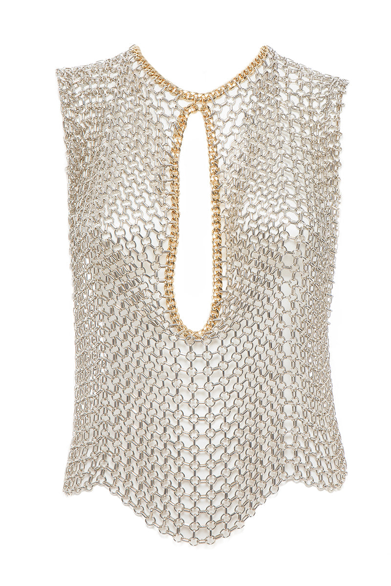 The Lolou Vest blends silver and gold tones in a striking design, featuring a gold-plated aluminum body.