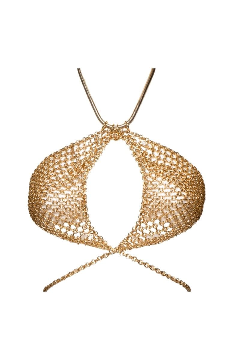 Keep your style timeless with THE GOLD UNDER JACKET CHAIN BRA. Crafted from brass plated gold or silver with 24k gold and silver powder, this durable and quality chain piece is nickel free and sure to be a conversation starter. Show your modern fashion sense any day of the week.