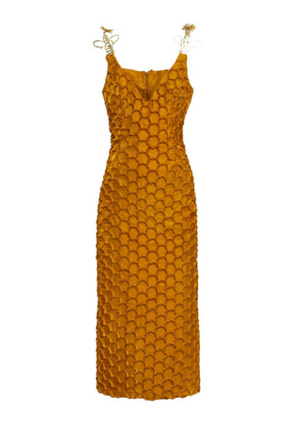 - Custom Yellow Gold-Plated Hardware Straps: Feature the signature bee logo and sunburst Zora design with crystal accents