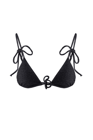 Claudia Bikini Triangle comes in one color, top features self-tie straps on the bikini top that are adjustable. Cut from sparkly swim lurex fabric and is fully lined.