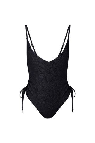 Suncillo’s signature one piece. Francesca One Piece comes in one sparkly color, the top has adjustable back straps and an adjustable cheeky bottom to be worn high-rise or mid-rise. Cut from sparkly swim lurex fabric and is fully lined.