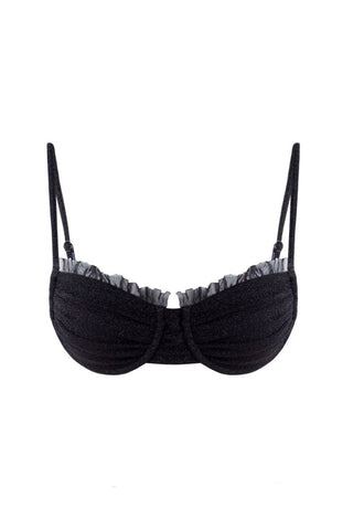 The Gina Sparkly Ruffles Bikini Top combines elegance and functionality in a timeless design. Featuring adjustable shoulder straps and built-in support, it offers a comfortable and flattering fit. Made from sparkly swim fabric and fully lined.