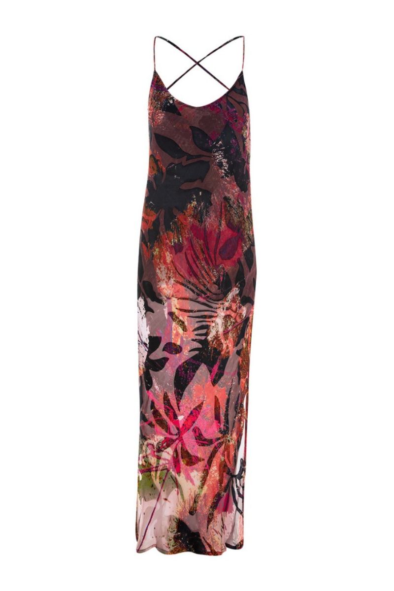 -The Livia Dress showcases a meticulously chosen floral design, highlighting a form-fitting shape and a daring cowl back that exudes sultriness. Crafted from sheer and fluid silk chiffon with silk satin details.