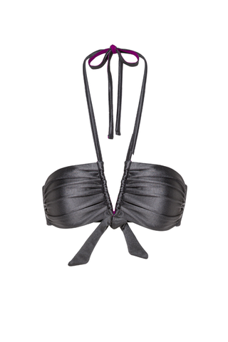 The Virna Glossy Bandeau Top comes in a single lustrous shade and features self-tie shoulder straps for a feminine touch. The bold V-shaped front offers added support and elevates the classic bandeau silhouette. This piece pairs perfectly with the Virna Glossy Bottom.