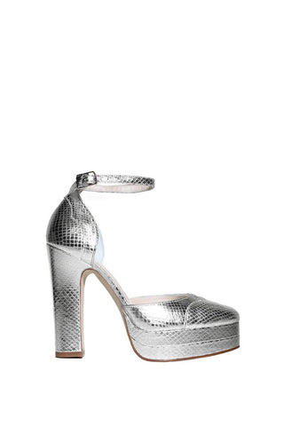 Step back in time with bold, Amalfi Inspired glamour in the Lily Platform Block Heel. Featuring a 12cm heel and 3cm double platform, this iconic TDH silhouette balances height and comfort with signature style. The closed back and ankle strap finished with a lightning bolt buckle ensure a secure, statement-making fit while the intricate detailing on the upper adds a touch of artistry. Crafted in metallic Silver Leathers and made from sustainably sourced, LWG-approved materials, this Lily is perfect for those who dare to stand out with unapologetic style.