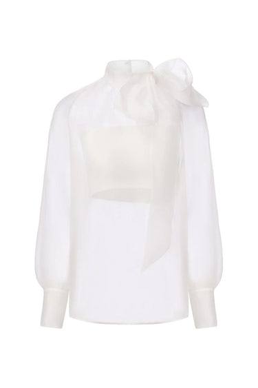- Diamond-chain bow neckline
