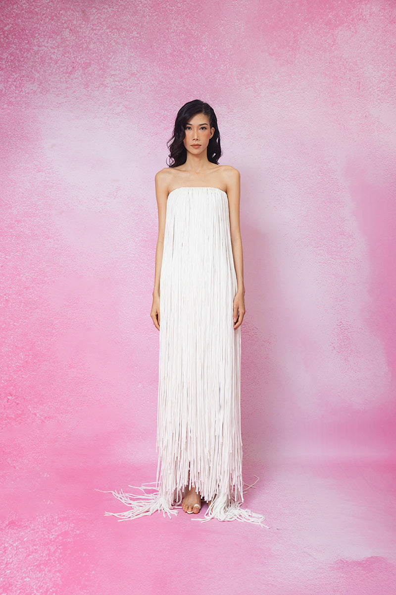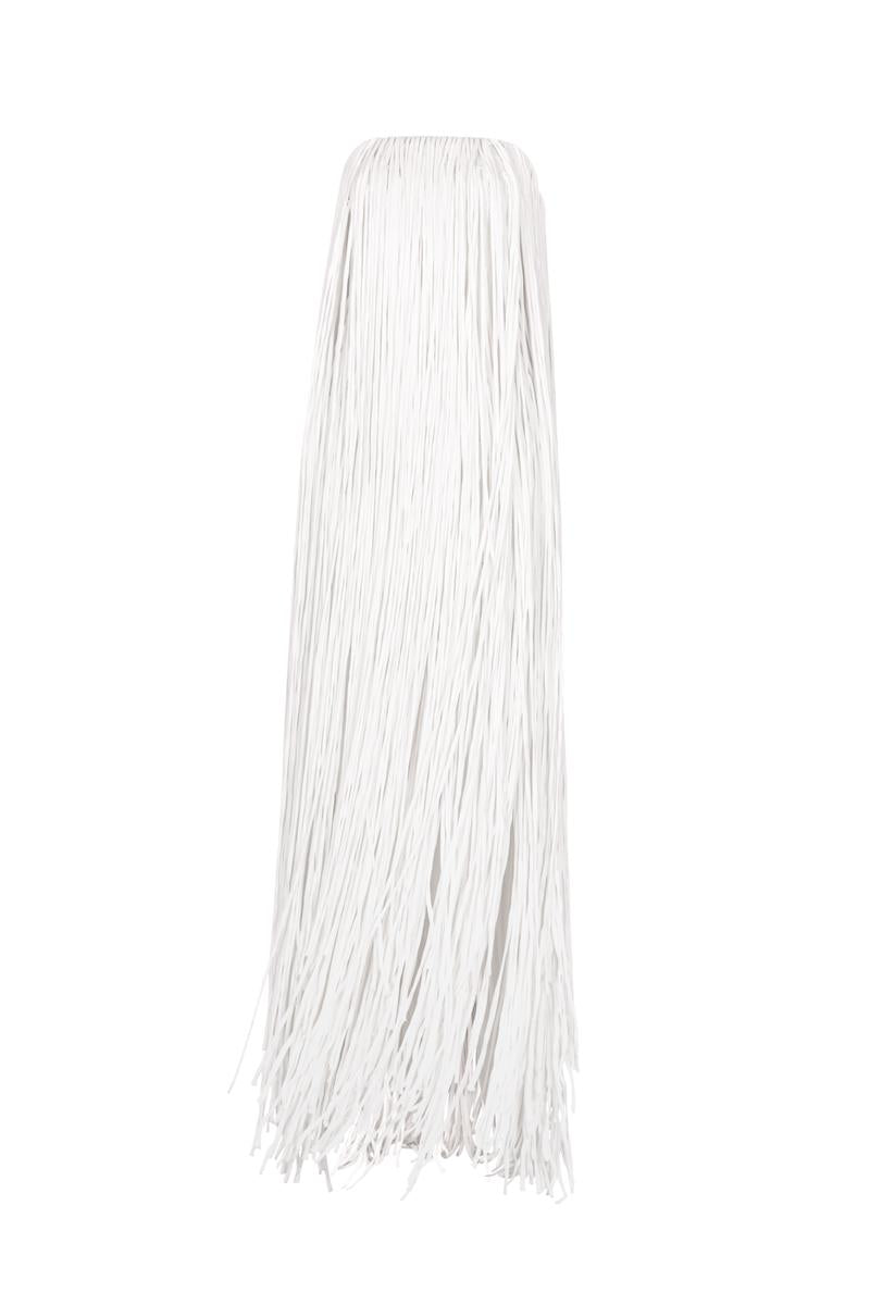 all over fringed maxi dress in white