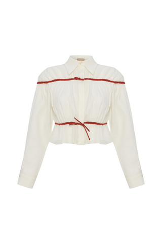 colette ecru and red linen tie shirt