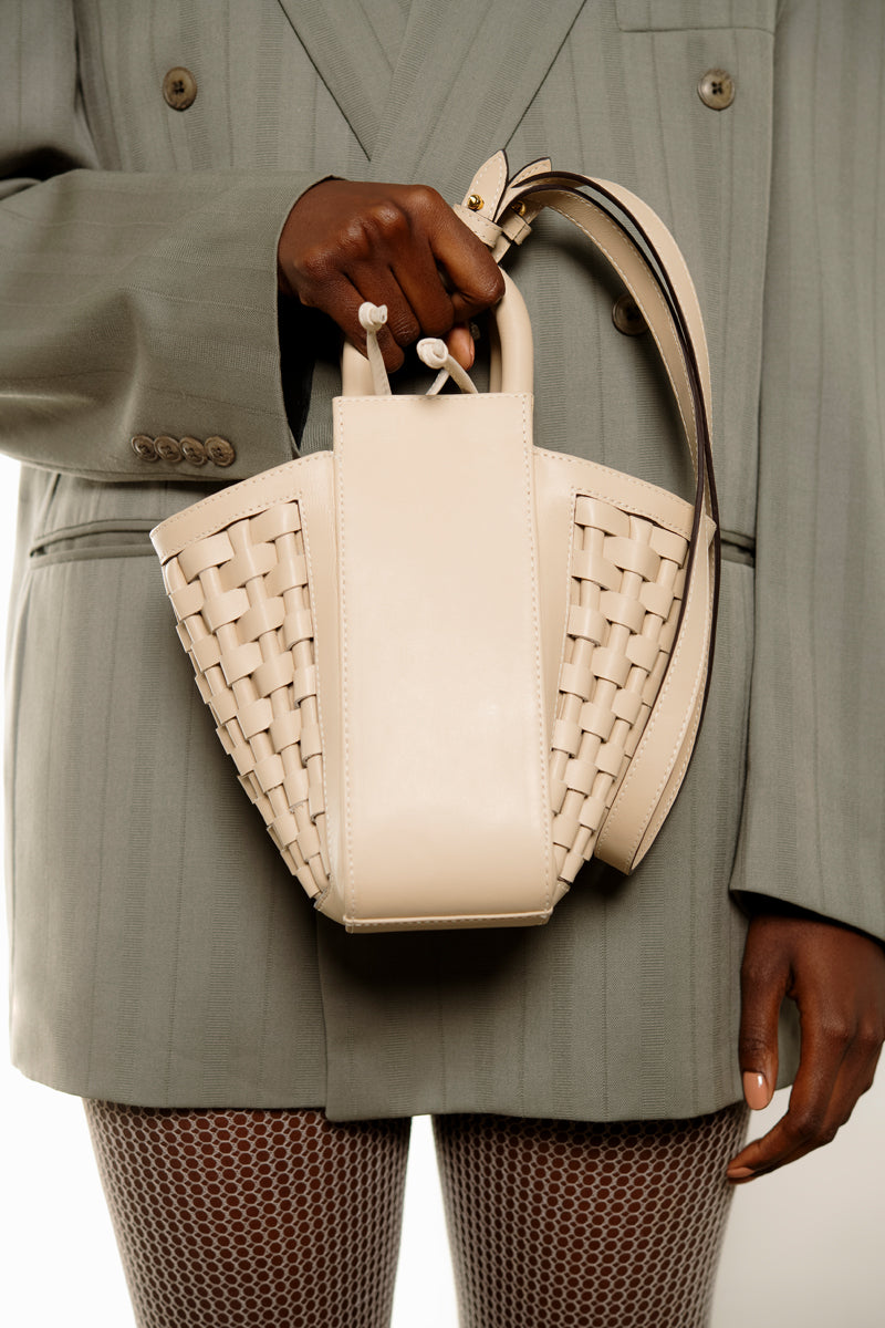 La Dorada mini is a timeless piece, inspired by the art-deco architecture and the free spirit from the seventies. This piece converge traditional leather work and the artisanal techniques from Colombia Features two hand weaved lateral panels in leather, our versatile and spacious mini tote converges the craft and dedication in the leather work