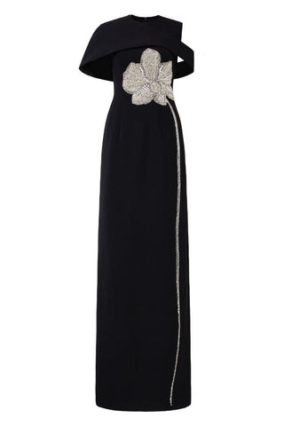 Presenting a remarkable fusion of botanical beauty and daring elegance: the Stone Orchid Patterned Asymmetric Shoulder Dress. This captivating ensemble seamlessly blends the grace of orchid motifs with a modern twist, creating a garment that exudes sophistication. The asymmetric shoulder design adds a touch of boldness, framing one shoulder with an alluring accent. Adorned with meticulously placed stone embellishments and intricate orchid patterns, the dress becomes a canvas of shimmering artistry, each stone capturing the light in a mesmerizing dance.