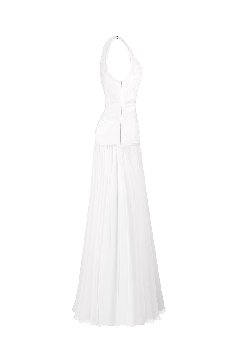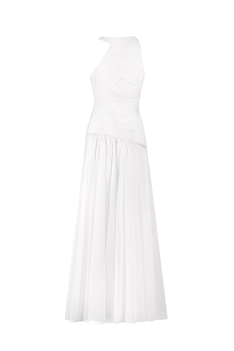 asymmetrical low waistline gown in white