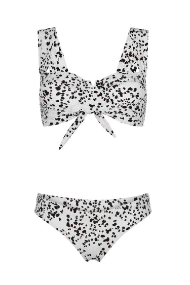 Capture the beauty of Parisian city winds with the BLACK & WHITE POLKADOT BIKINI from Aguaclara. This exclusive design features a bustier top with comfortable seamless straps and metal rings, and a feminine hipster bottom for Brazilian coverage. A unique, tasteful look perfect for any poolside or beach setting.