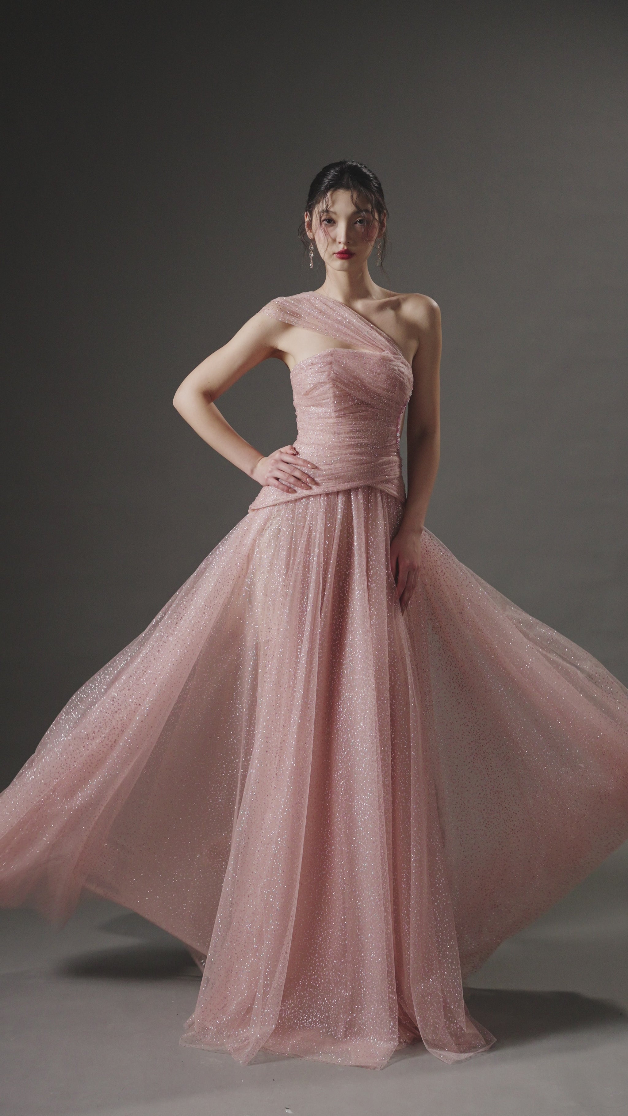 - Fitted with delicate ruching, sculpting the upper body, exquisite cut-out at waist and cut-line decorated with crystals and sequins