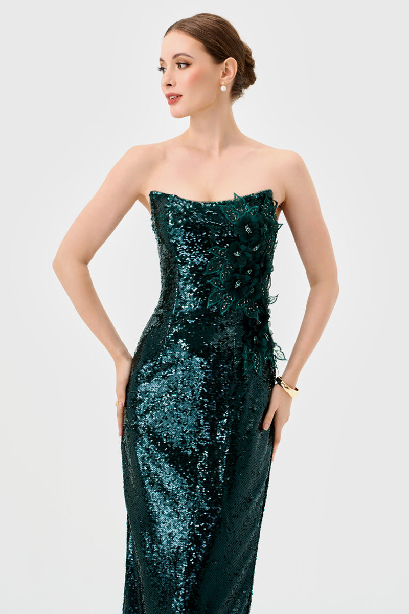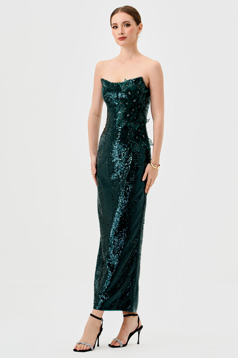 - Strapless scoop neckline