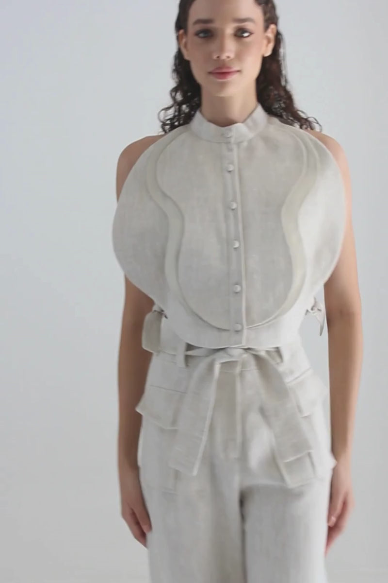- Double wavy layers on breastplate (one in linen, one in voile)