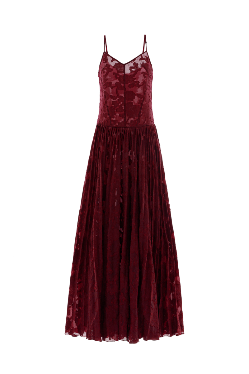 This exquisite dress features delicate double straps, a low back, and a stunning A-line skirt with pleated detailing.
