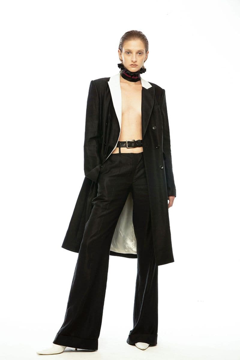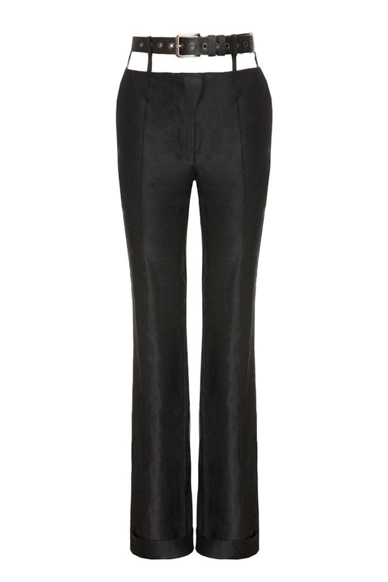 Handcrafted in Georgia, Tbilisi with a sleek leather belt, side pockets, and a cut-out waist - for the ultimate luxury market appeal.